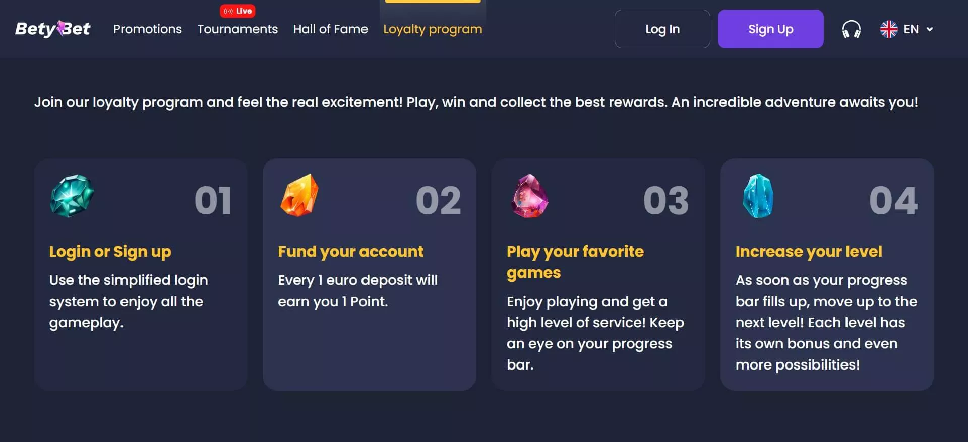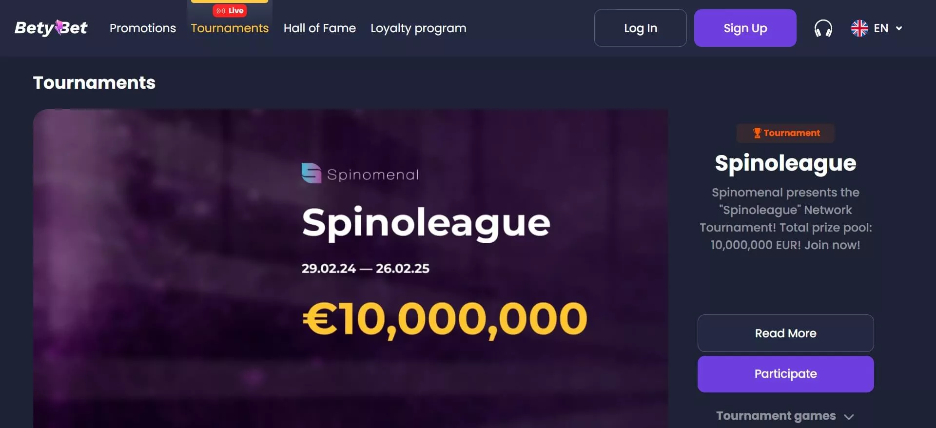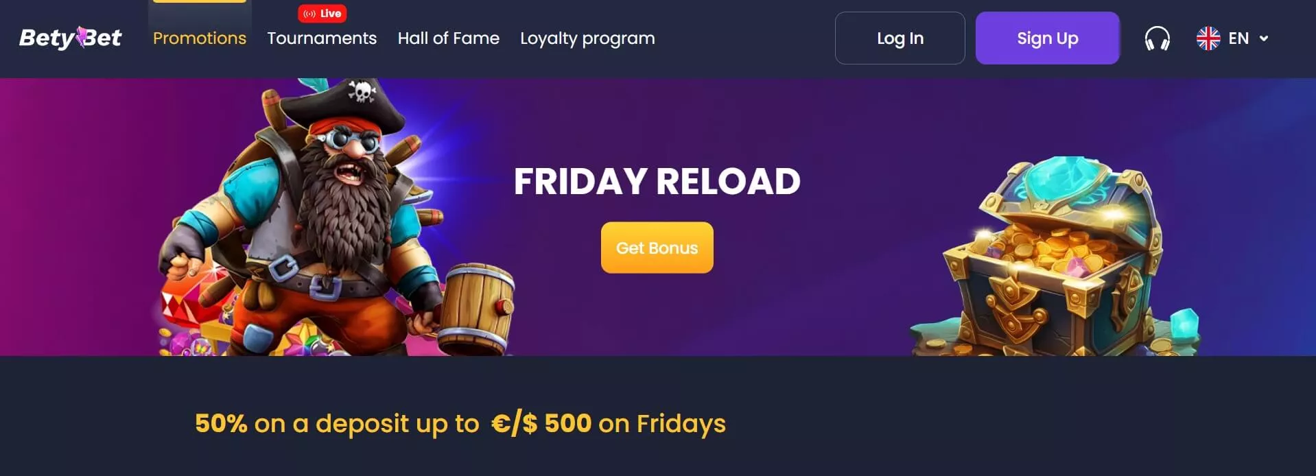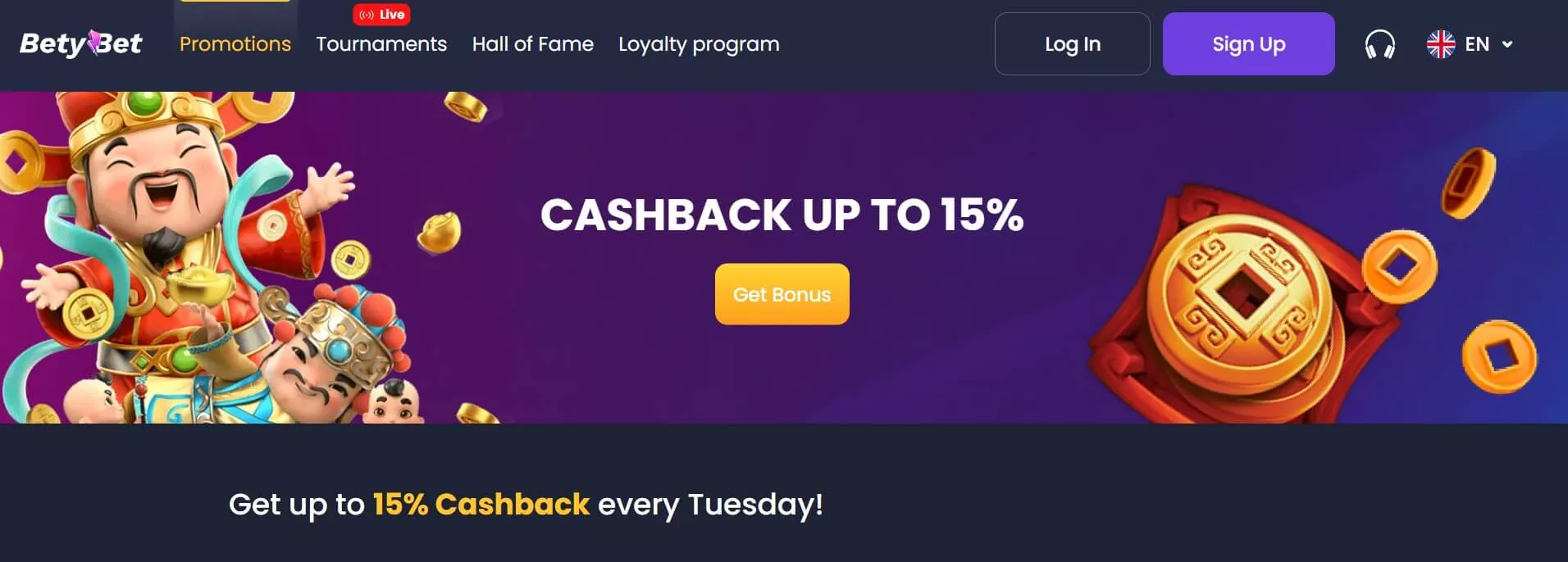 De welkomstbonus bestaat hier uit een match bonus van maximaal 2000 euro. Wel is hiervoor een storting nodig. De cashback bonus is aantrekkelijk voor diegene die regelmatig storten. Het loyaliteitsprogramma is op orde en vergeet zeker de tournaments niet. Daarnaast zijn er regelmatig nieuwe bonussen bij Betybet casino 2024. Op de officiële website van Betybet online casino Nederland 2024 is een actueel overzicht van promoties voor vaste spelers.