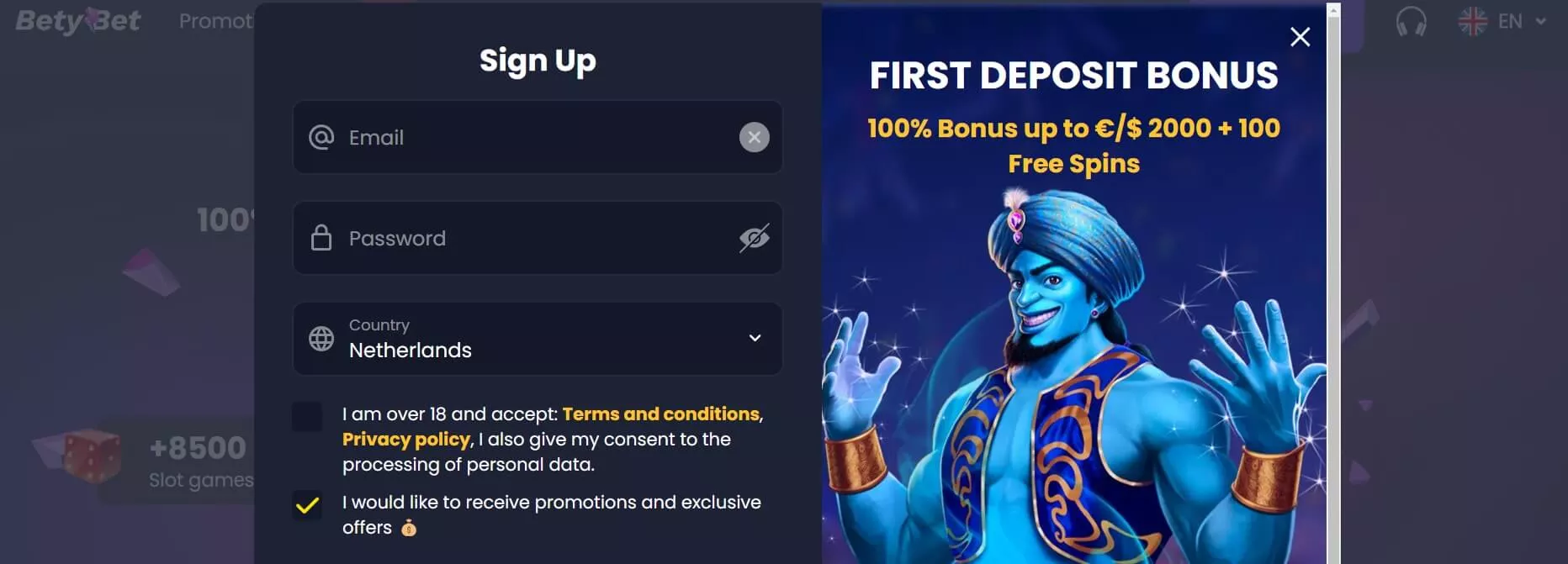 BetyBet Welkomstbonus – Eerste Stortingsbonus