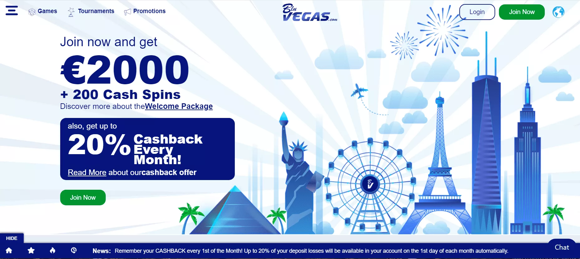 BluVegas Nederland weet duidelijk wat het doet op het gebied van bonussen. De BluVegas bonus voor nieuwe spelers bestaat bijvoorbeeld uit een match bonus van maximaal 2000 euro en gratis spins. Daarnaast is er een regelmatig cashback bonus waarbij je bij BluVegas online op een maandelijkse basis tot wel 20% van je verliezen terugkrijgt.