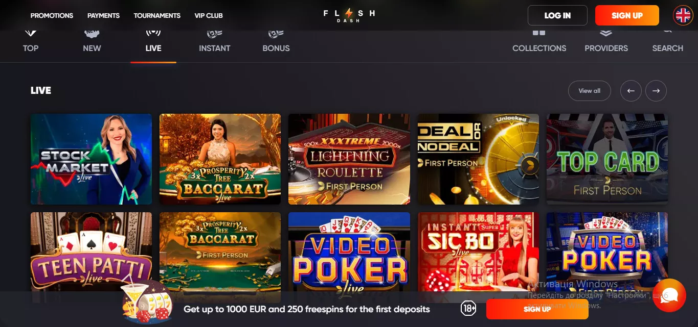 De Flash Dash spellen bestaan uit slots, tafelspellen en een live casino. Er wordt samengewerkt met een aantal bekende producenten, waaronder Microgaming en Play n Go.
