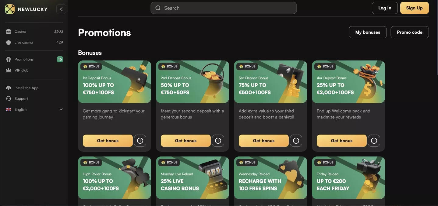 De NewLucky bonussen zijn echt helemaal in orde. De welkomstbonus wordt verdeeld over jouw eerste vier stortingen en bedraagt, als match bonus, maximaal 2000 euro. NewLucky online heeft daarnaast voor vaste spelers onder meer een wekelijkse cashback bonus. Verder biedt NewLucky online casino een goed loyaliteitsprogramma. Controleer uiteraard altijd de bonusvoorwaarden, zoals het doorspeelvereiste en de minimale inleg.