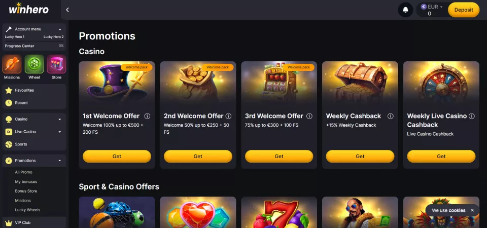 Er is een groot aantal promoties beschikbaar wanneer je geld gaat storten. Zowel nieuwe als bestaande spelers kunnen op deze manier van vele extra’s profiteren. Dit zijn de meest gebruikte nieuwe bonussen bij WinHero Casino in 2025: